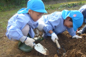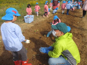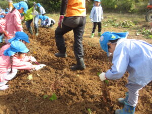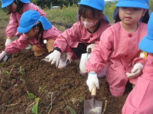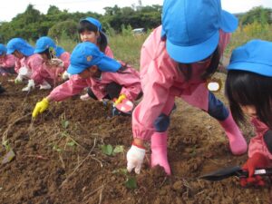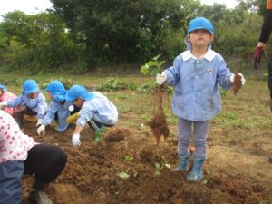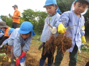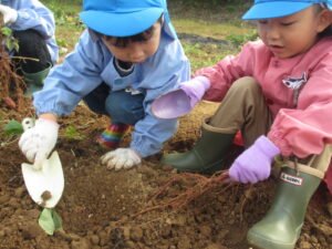 土に隠れているさつまいもを見つけて、力一杯引っ張ります👌