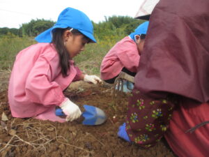 すぐに抜けるものもありましたが、土から出てこない!と持ってきたスコップで必死に掘っていました😆