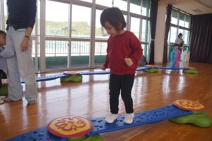 ベルの上を歩いたり、ジャンプしたり、くぐったり。
