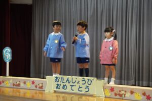 今日は年少組、年長組11月生まれのお友だちの誕生会を行いました✨