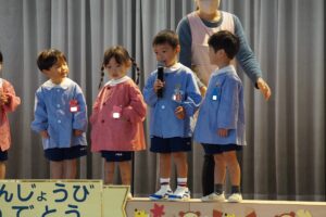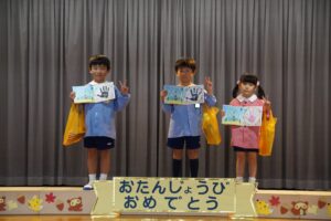 今日は年少組、年長組11月生まれのお友だちの誕生会を行いました✨