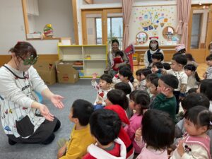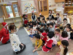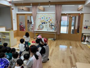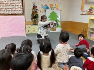 先生がクリスマスの絵本を読んでくれました📕みんな興味津々で静かにお話が聞けました!