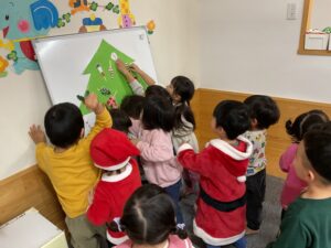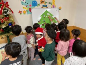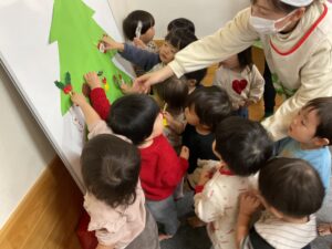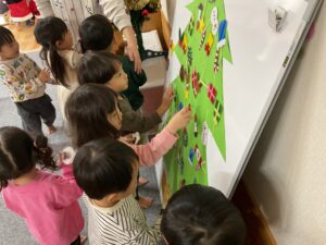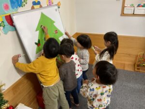 次はみんなにも協力してもらいクリスマスツリーの飾り付けをしましたよ⭐️1人ずつかわいいオーナメントをもらいました🫶