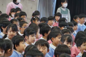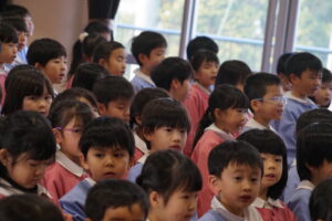 年少・最年少組は初めて園歌を歌ったので、年中・年長組の歌声を一生懸命、真似しながら大きな声で歌っていました✨