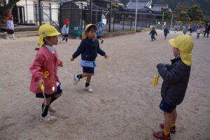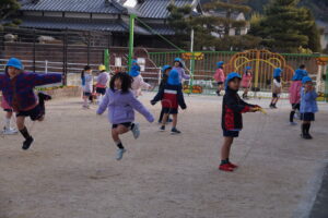 さっそく友だちと一緒に元気いっぱい外で遊び、縄跳びに挑戦する姿もたくさん見られました。