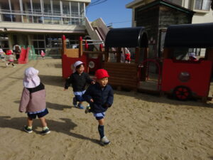 寒さに負けず、おにごっこでからだをしっかり動かして遊びました👹