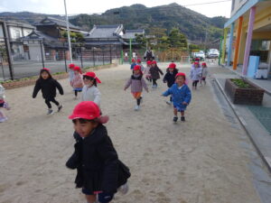 寒さに負けず、おにごっこでからだをしっかり動かして遊びました👹