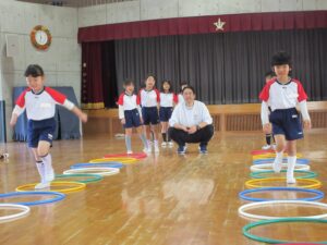 最後は片足でケンケン! バランスを保ちながら上手に跳べていました!