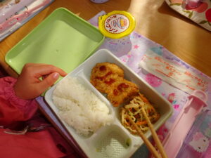 そして、今日の給食はいわしのフライ、大豆プリンと節分メニューでした👹お弁当箱の蓋にはかわいい鬼が💕おいしかったですね😋