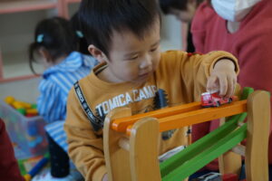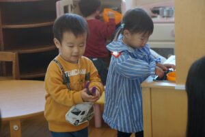 「おはようございます🤗 お名前教えてください」…すぐにお名前が言えるお友だちが増えてきました。お母さんの顔をうかがいながら、どうしようかな?言ってみようかな、やめとこうかな?と、もじもじするお友だちも😉でも遊び始めると元気な声が聞こえてきます。