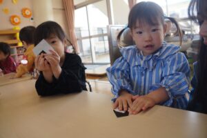 プレぴよクラブのお友だち、見たり聞いたりするのがとても上手になりました。