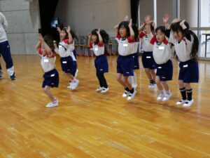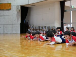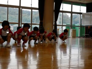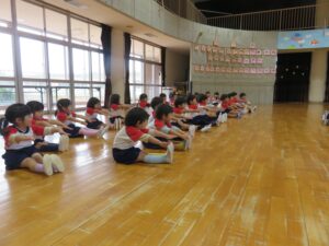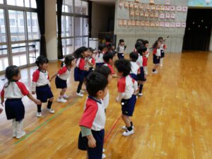 準備体操で身体をほぐした後は、模倣運動を楽しみました🎵