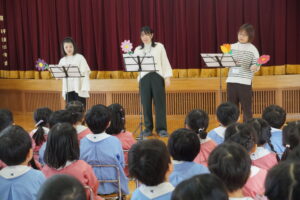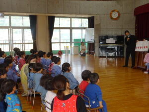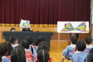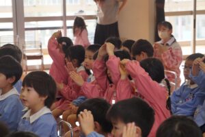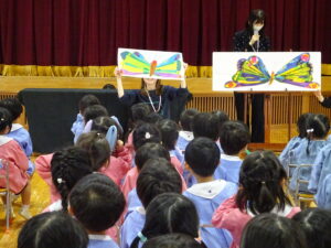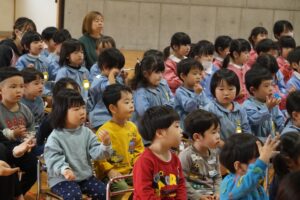 楽しみにしていたお家の人による、お歌とお話の会が行われました🎵今日のお客さんは、ぱんだ・ひよこ・年少組の回と年中組の回と2回公演でした🎉