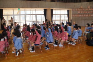 年中組最後は、先生クイズ‼️先生の好きなキャラクター、好きな動物、もし魔法が使えたら何がしたいか、好きな曲、クラスの子ども達の好きな所を3択の中から当てるクイズ🤔担任のことをよく知っている子ども達でした💕