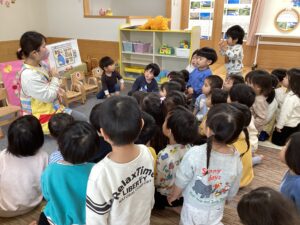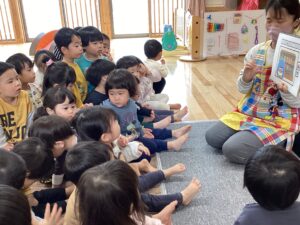 最初に、みんなで「まあるいたまご」の手遊びをしました♪