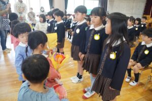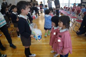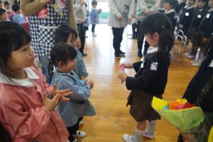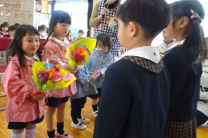 年少組、ひよこ組は、手作り花束のプレゼント🌼🌷いつも優しくお世話してくれた大好きな年長組さん『ありがとうございました!』