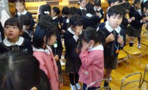 この一年間、鴻城幼稚園みんなのお手本として素敵な姿をたくさん見せてくれた年長組✨そんな年長組さんへ、ありがとうの気持ちを伝えました🤗