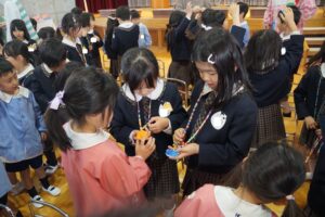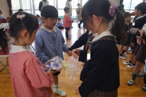 年長組の皆さんに卒園式でつけるコサージュとペンダントをプレゼント🎁ペンダントは係のお仕事を教えてもらったペアのお兄さんお姉さんに☺️お別れが寂しくて涙が出る子も・・・🥲『小学校に行っても頑張ってね!』