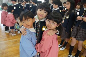 先週から年長組の生活の仕方を教えてもらっていた年中組。とても優しく教えてもらい、ますます憧れの存在に🥰