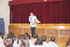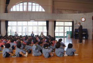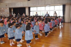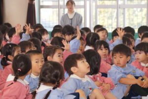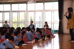 園長先生と副園長先生の話を最後まで聞き、「早寝・早起き・朝ご飯」をよく覚えていたね😄